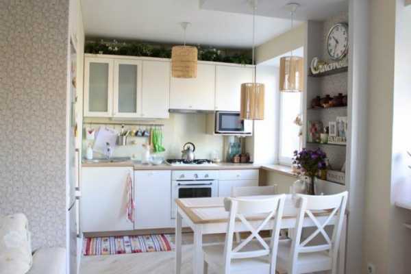 Стиль прованс, характеризующийся огромным количеством украшений, декора, рисунков на обоях, сделает кухню визуально еще меньше, поэтому от него лучше отказаться.