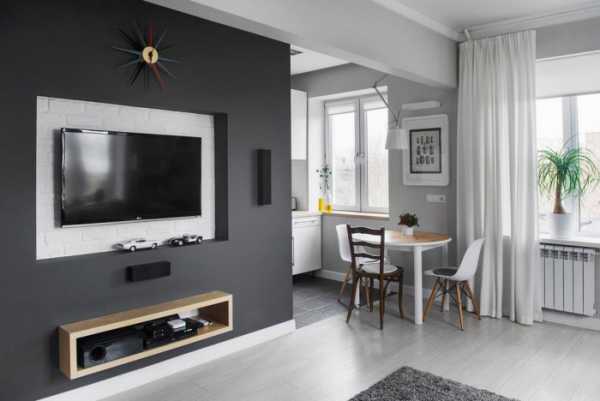 Кухня-гостиная с мебелью из ИКЕАПосле перепланировки актуальным становится вопрос зонирования. Выделить несколько главных функциональных центров можно с помощью цвета мебели: например, кухня – белая, обеденная зона (стол и стулья) – черная.