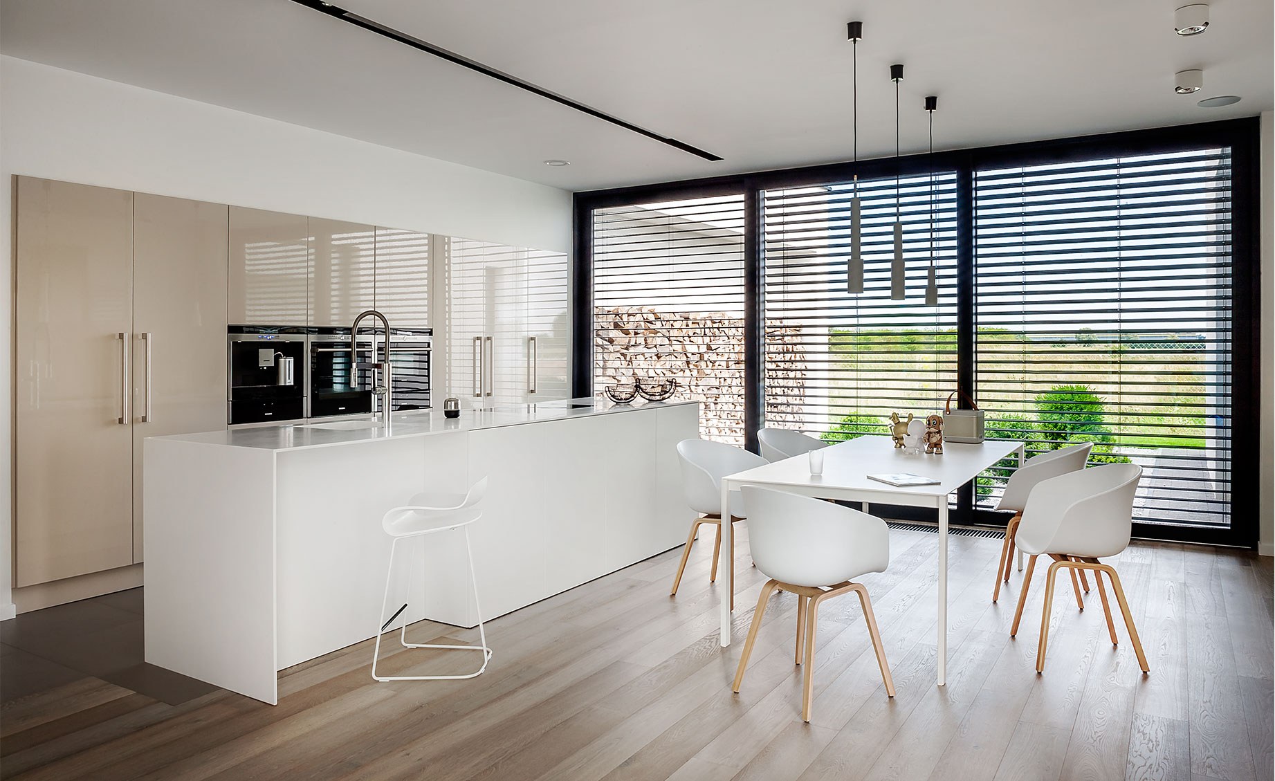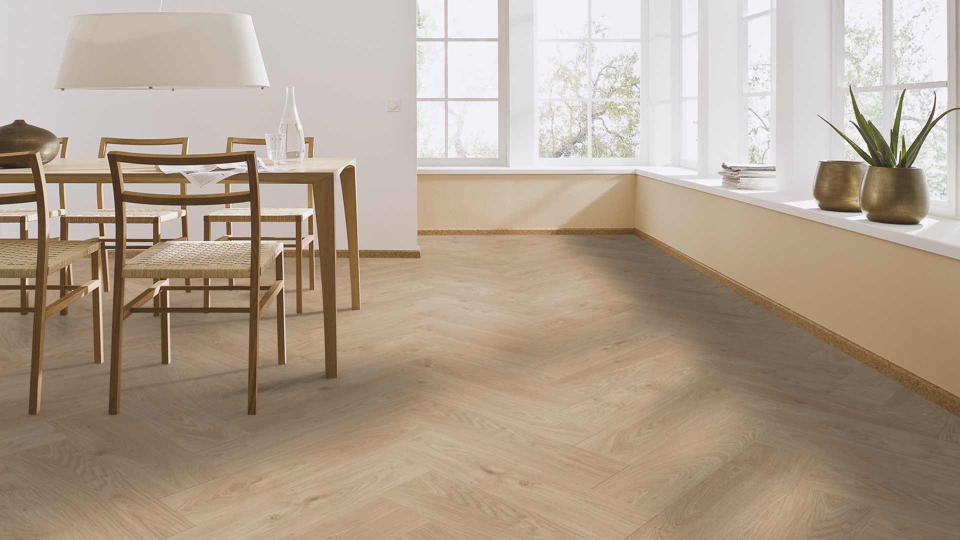 Оттенок кофе с молоком будет интересным решением для домашнего пространства. Вариативность укладки дает Вам на выбор два рисунка «ёлочка» и «ромб», а мягкие тона ламината наполнят дизайн спокойствием.