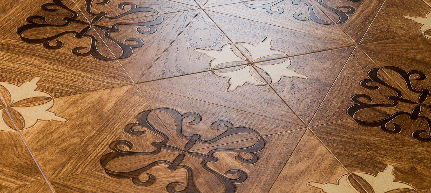 Художественное полотно представляет собой фотообои, покрытые специальной защитной пленкой. Высокое качество производства в настоящее время достигает таких высот, что визуально отличить ламинат от паркета довольно сложно. Представленные на рынке модели облицовочных плит способны с успехом воссоздать дворцовые паркетные покрытия.В орнаментах, наряду с разнообразными элементами декора, используются три основных направления: