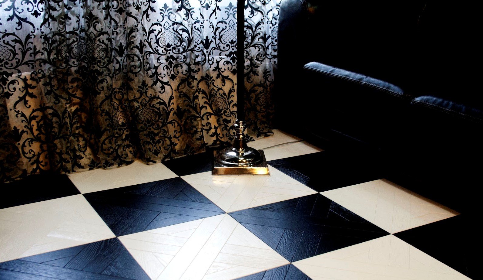 В стиле арт-деко превосходно будет смотреться шахматная черная и белая имитация модульной плитки. К кантри и этно подойдет ламинат, на котором изображены природные мотивы: шишки, елочный узор, сруб необработанной древесины. Покрытие, имитирующее холщовую ткань или циновку, не оставит равнодушными любителей натуральных материалов и экзотики.