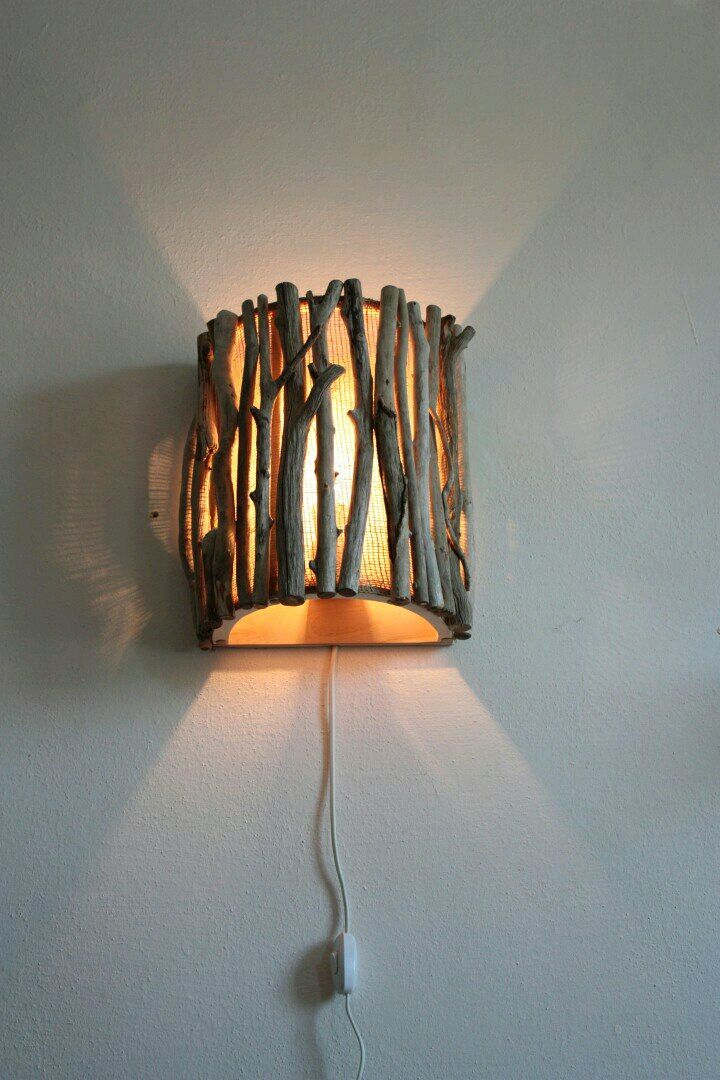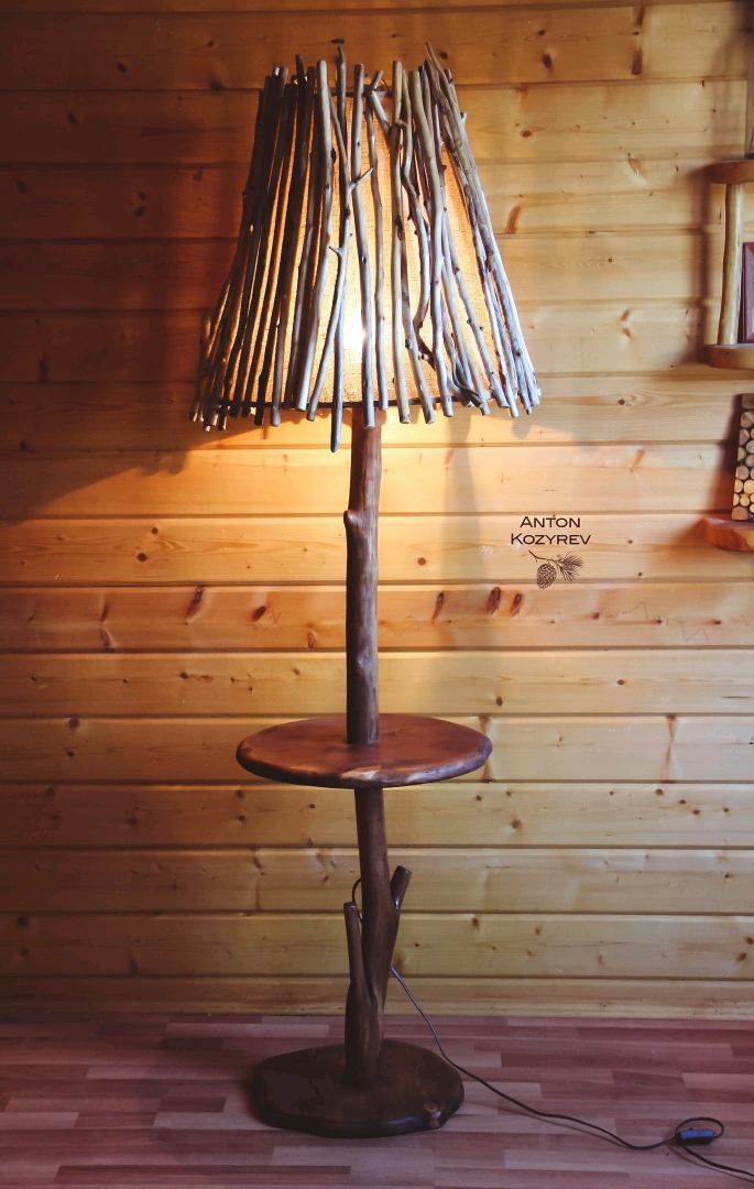 Настольная лампа своими руками легко изготавливается из природных материалов: шишек, желудей, веточкек. Работа с древесиной хоть и требует навыков, но в целом несложна: в качестве подставки можно взять обычный круглый спил, в качестве опорной оси — эффектную толстую ветку. Абажуром станут засушенные листья.