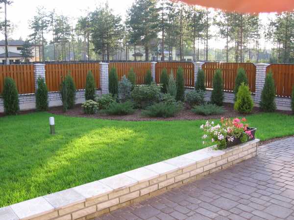 Если двор возле дома или дача небольшие, да еще правильной формы — квадратной или прямоугольной — забор, скорее всего просматривается из любой точки. Ощущение при этом как в коробке. Устранить его можно, если закрыть забор насаждениями. Но расти они должны не линией, повторяющей форму забора, а плавными, изогнутыми кривыми или группами, которые заходят на газон. Перемежаться растений могут кустарниками, розариями, можно поставить угловую беседку или выделить какую-то зону, нарушающую правильность линий.