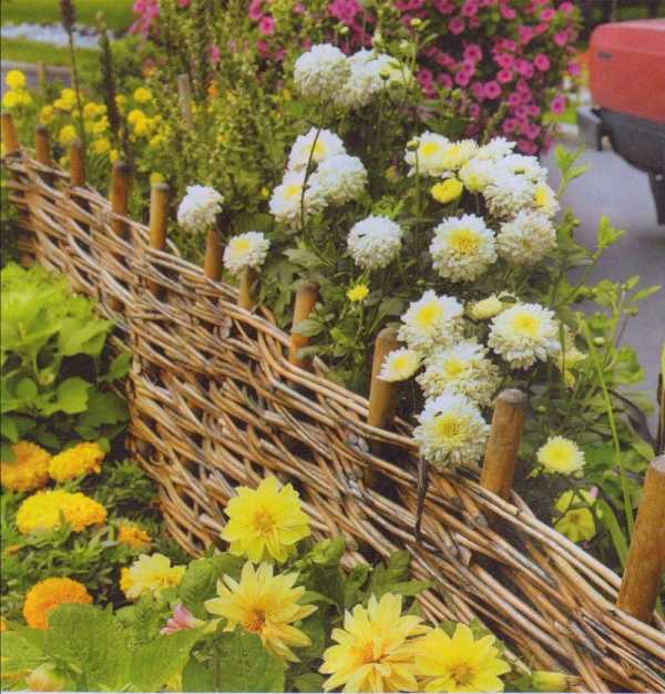 - Ограждения – используются заборы с широкими зазорами между досками. Они не должны закрывать созданную красоту. Главная роль изделий – декорирование, а не охрана.