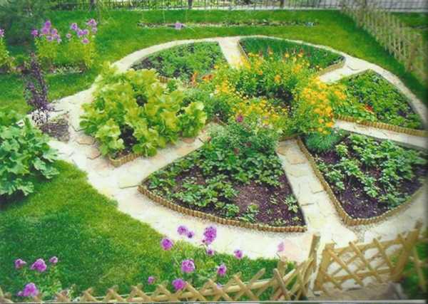 - Вместо привычного огорода, лучше всего разбивать клумбы в виде круга. Такой огород всегда будет выглядеть очень красиво, необычно, и все потому, что будет похож на цветочную клумбу.