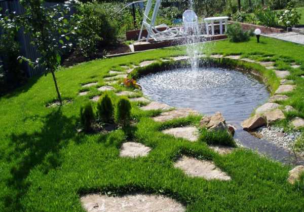 - Декоративный фонтан. Еще один способ оформить собственный участок. Он отлично вписывается в любой ландшафтный дизайн и делает композицию законченной;