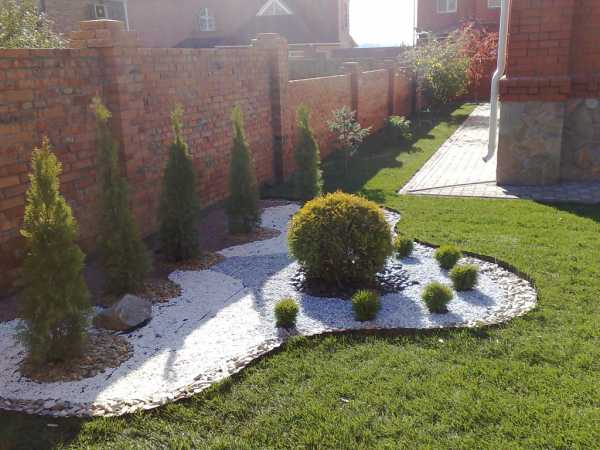 - Колоссальный эффектправильно зонированного пространства формирует использование круглых или дугообразных форм при озеленении.