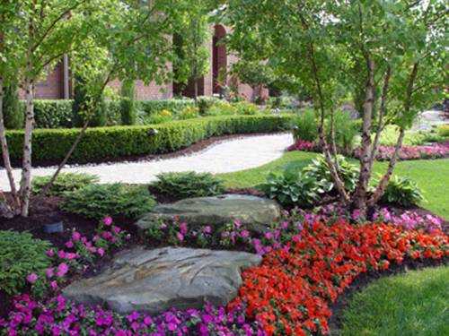 Современное ландшафтное проектирование должно отражать количество и особенности каждого растения. Выбор цветов на участке делают исходя из его конкретного места и функциональной нагрузки, которая ложится на растения. Перед домом лучше сделать парные цветники, вдалеке неплохо расположить красочный миксбордер, дорожки следует украсить рабатками.