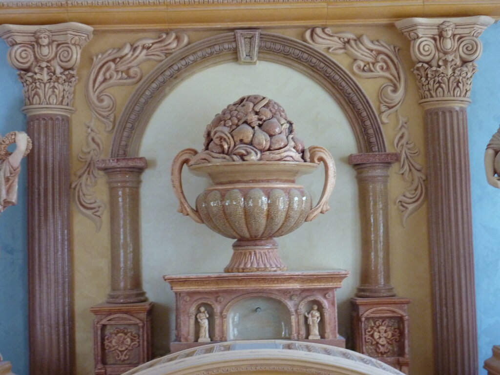 | Лепнина подчеркивает этот парадокс, создавая связь между стеной и аркой, принадлежащей именно этой стене. | The stucco decoration underlines this paradox by creating relation between wall and arch belonging to that particular wall. |