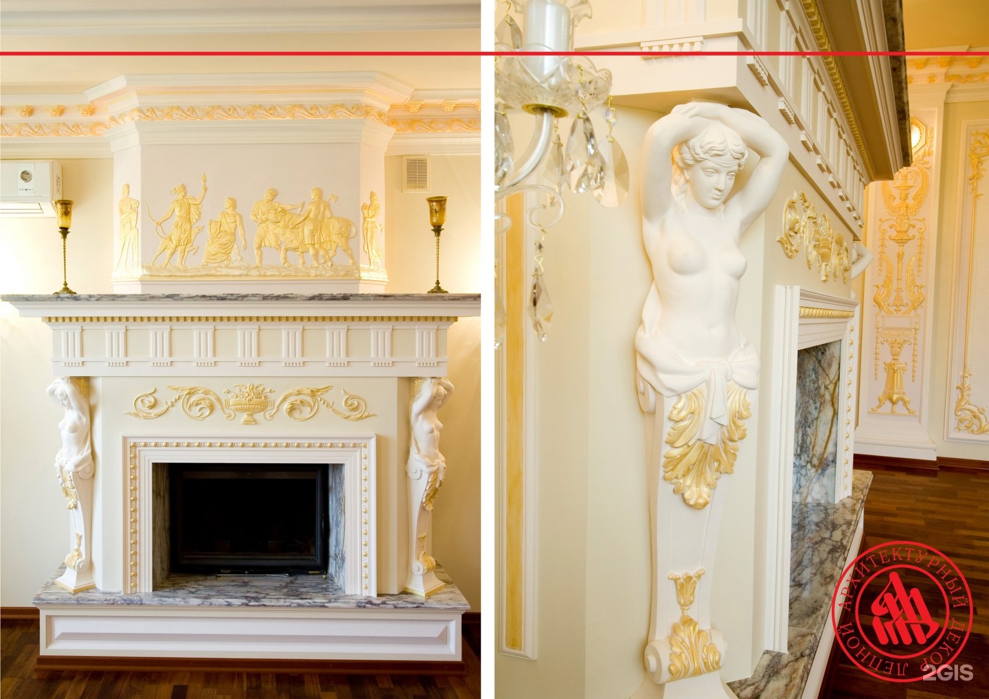 | Мебель в стиле ампир, великолепная лепнина. | Empire furnishings and crenelated moulding. |