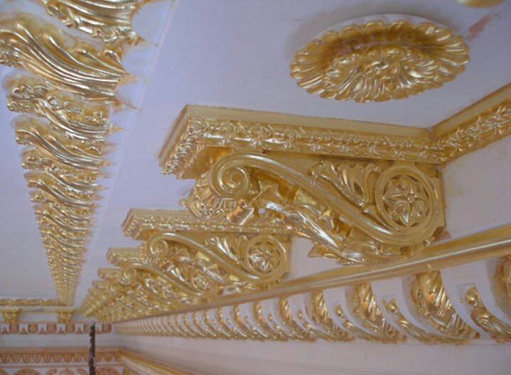 Карнизы могут вытягиваться, а могут лепиться. Подразделяются на внутренние и наружные карнизы. По развернутым профилям могут иметь самые различные размеры.