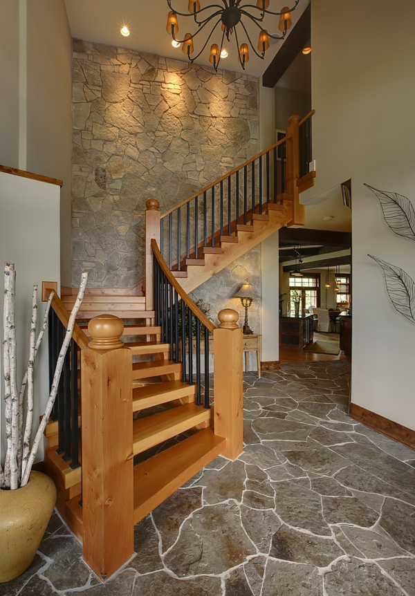 Самым популярным местом для лестницы остается прихожая, особенно в просторных особняках. Таким образом, войдя в дом, вы сразу получаете доступ ко всем комнатам, не блуждая по коридорам.