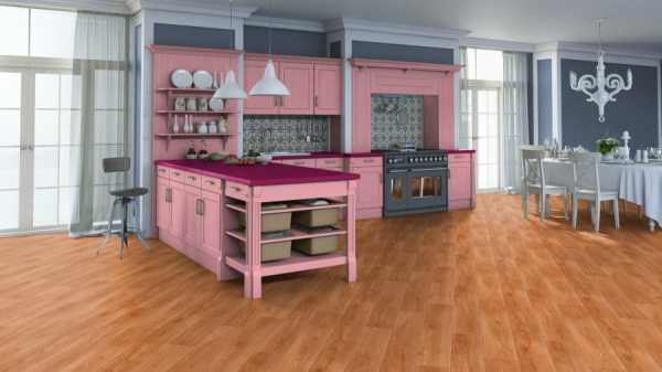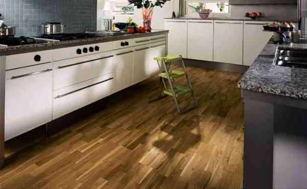 - дерево. Красивый вариант, тоже подойдет для кухни. Линолеум обычно укладывают в рабочую зону, дерево – в обеденную. Но нужно следить, чтобы они сочетались друг с другом. Можно заменить дерево ламинатом.