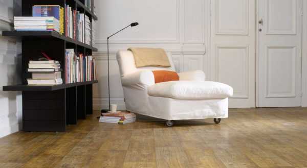 Линолеум не страдает от влажности, его легко мыть, он плохо горит и не рассыхается со временем. Его можно поцарапать, но легко убрать повреждение. На нем не остается пятен от горячего и агрессивной химии. Хороший, дорогой линолеум под паркет можно класть даже в классических стилях.