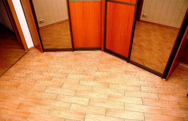 Линолеум под плиткуВнешне ничем не отличается от плитки, только не имеет швов и является не таким твердым.