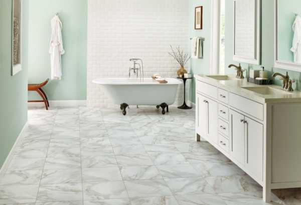 Для ванной в основном используют покрытия с нескользящей основой и высоким уровнем влагостойкости, которые надолго сохраняют первоначальный вид и со временем не деформируются.