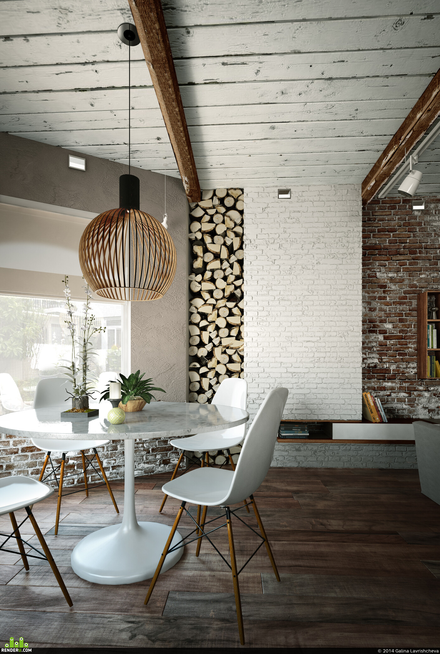 Декорирование квартир или комнат в белых тонах очень перспективно. Чтобы сделать помещение интереснее, можно сформировать все стены в белом цвете, а одну сделать из красного кирпича или его имитации. Полы рекомендуется покрывать природной древесиной высокого качества. Для украшения пространства рекомендуется применять чёрно-белые картины и светильники нестандартного вида. На кухне светлый окрас типичен: