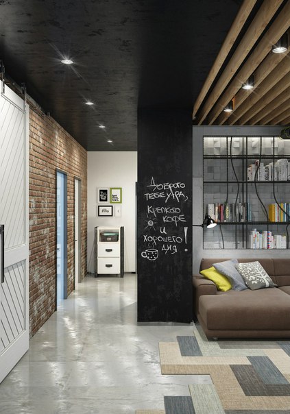 Индустриальный шик прекрасно оттеняет современные мотивы, интерьеры получаются нетривиальными.