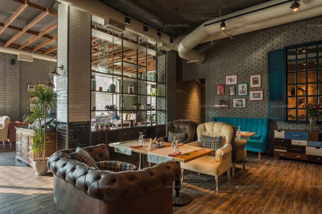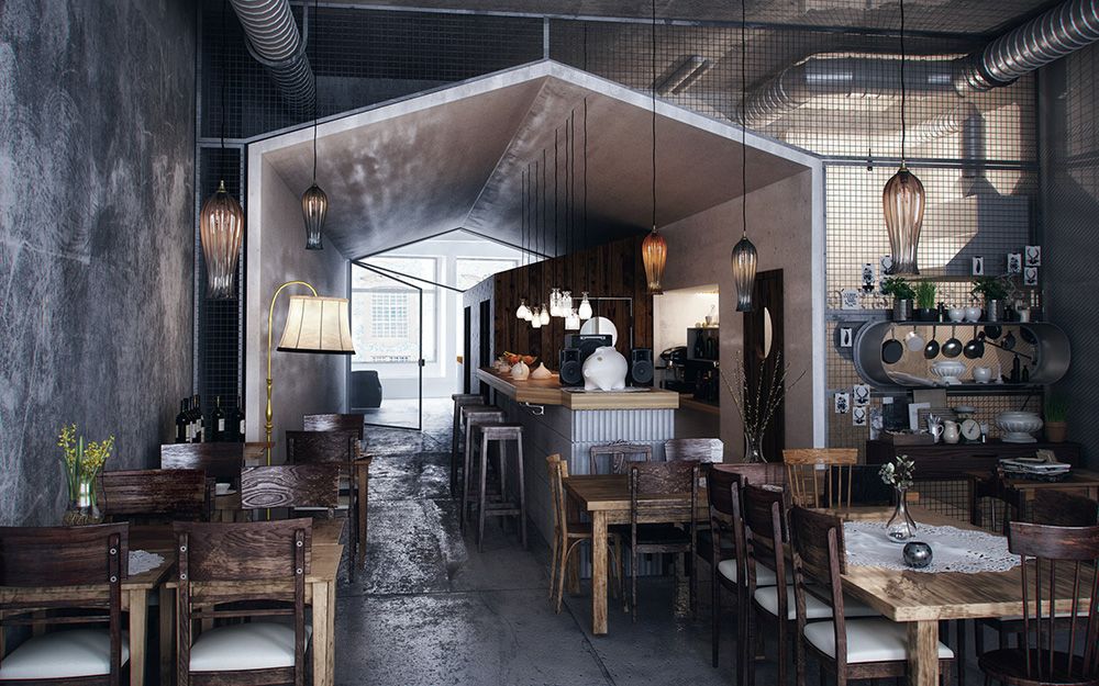 Дизайн кафе в стиле лофт от компании Restconcept, по низким ценам