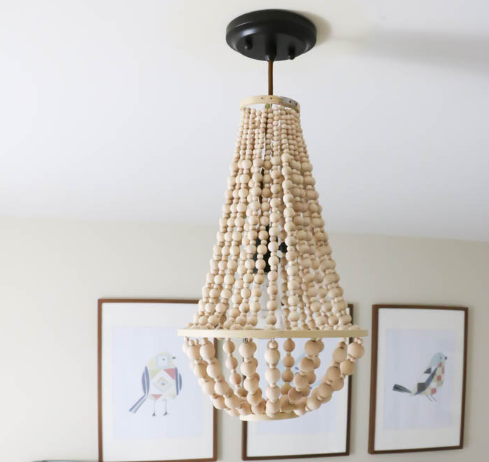 Я всегда хотел одну из этих красивых люстр с деревянными бусинами. Вы знаете тех, о ком я говорю. Те, которые стоят от 400 до 3000 долларов в зависимости от того, где вы ищете. Люстра Pottery Barn, на которую я положил глаз, стоила 759 долларов… и я просто не собирался раскошеливаться на нее.