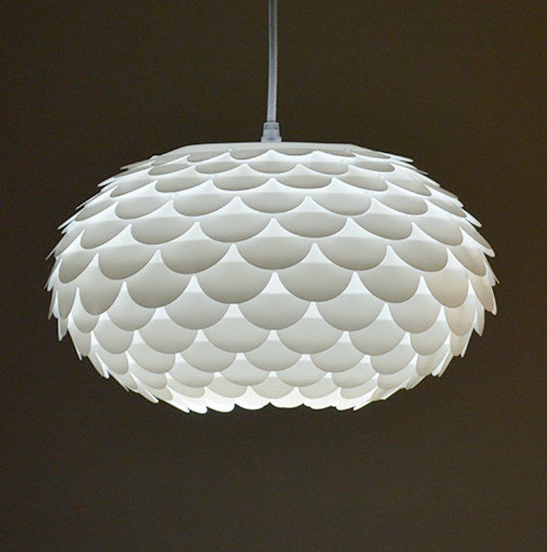 Продолжая тему света, можно рассмотреть еще один пример удачного дизайна люстры, выполненной в виде огромной ракушки. Благодаря специальным отверстиям свет прекрасно рассеивается, создавая спокойную и уютную атмосферу.