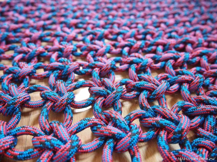 Связать нужно примерно 30 узлов или приблизительно 50 см (их количество зависит от толщины веревки и от необходимой длины изделия).
