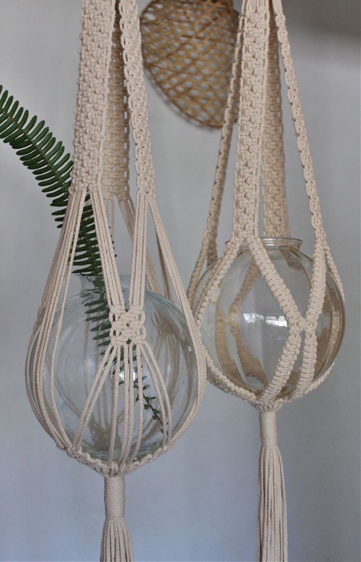 Простую гирлянду из макраме можно использовать в самых разных местах. Например, вокруг ваших гончаров, на каминной полке или просто для заполнения пустого места на стене.