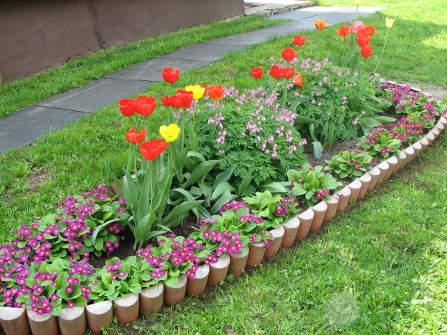 всего ничего — декоративный бордюр может быть выполнен из любых подручных материалов: камней,