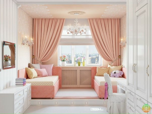 Так как ремонт делается на несколько лет вперед, нужно учесть взросление, а хороший дизайн менять не понадобится вовсе. Он должен быть удобным для игры в куклы, а затем подходить для уроков, общения и девичников.