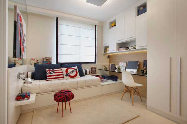 Кровать можно заменить софой, либо поместить ее над местом для игр, используя для этой цели многоярусную модель. Если покупка многоярусной кровати либо софы непозволительная роскошь, то проблему недостатка пространства при выборе дизайна детской для мальчика подростка, фото №, можно решить при помощи подиума, оснащенного многочисленными ящиками. Правильно оборудованный подиум позволит сэкономить немало кв. метров.