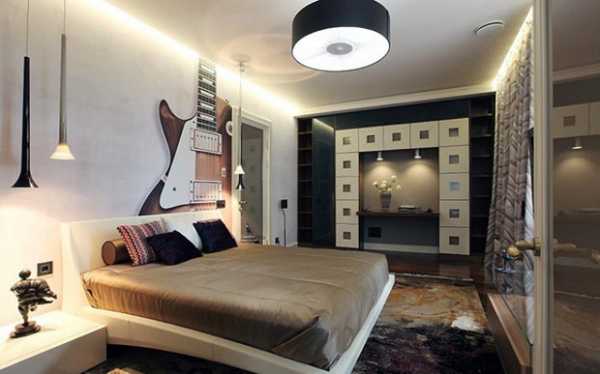 Декорировать интерьер можно сложными цветовыми оттенками, они наиболее точно передают взросление 16-летнего парня (фиолетовый, лазурный, бордо и пр.). На стенах уместны абстрактные рисунки и замысловатые композиции. Дизайн следует создавать с учетом хобби и увлечений. Самое время приобрести для музыканта недорогую аппаратуру, индивидуальную мебель для нее.