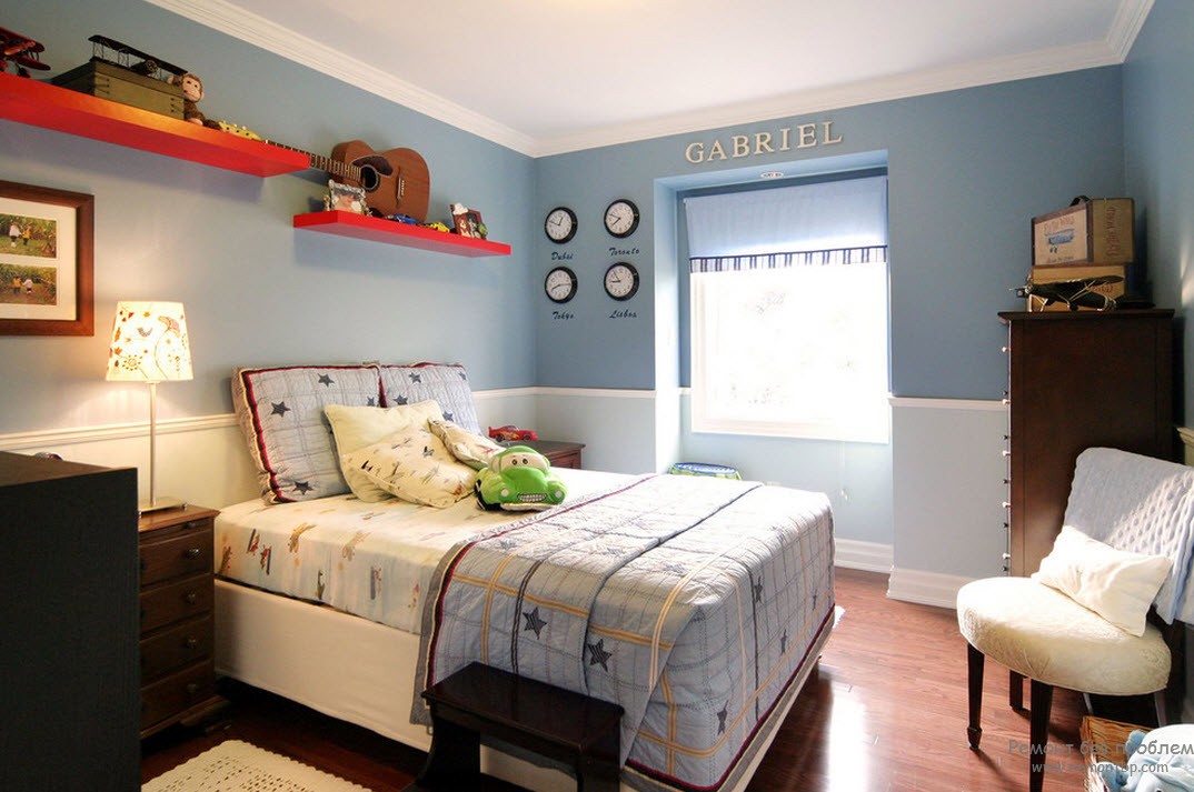 Как и в случае с девочками, нужно прислушаться к мнению самих братьев. Родители могут направлять и дать на выбор несколько вариантов, но решение принимают дети. Рекомендуется использовать синие, зеленые, коричневые, оранжевые оттенки. Красный цвет считается слишком агрессивным для такого помещения.