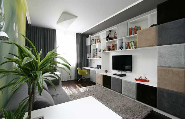Π‘ΡΠ΅Π½Ρ Π² ΡΠ°ΠΊΠΎΠΉ ΠΊΠΎΠΌΠ½Π°ΡΠ΅ ΠΌΠΎΠΆΠ½ΠΎ ΠΎΠΊΠ»Π΅ΠΈΡΡ ΠΎΠ±ΠΎΡΠΌΠΈ ΠΈΠ»ΠΈ ΠΎΠΊΡΠ°ΡΠΈΡΡ ΡΠ²ΠΎΠΈΠΌΠΈ ΡΡΠΊΠ°ΠΌΠΈ (Π² ΡΠ»ΡΡΠ°Π΅, Π΅ΡΠ»ΠΈ ΡΡΠΎ ΠΏΠΎΠ·Π²ΠΎΠ»ΡΡΡ ΠΏΡΠ°Π²ΠΈΠ»Π° ΠΏΡΠΎΠΆΠΈΠ²Π°Π½ΠΈΡ). ΠΠ½ΡΠ΅ΡΡΠ΅Ρ Π³ΠΎΡΡΠΈΠ½ΠΎΠΉ Π² ΡΠ²Π΅ΡΠ»ΡΡ ΡΠΎΠ½Π°Ρ ΠΏΠΎΠΌΠΎΠΆΠ΅Ρ, Ρ ΠΎΠ΄Π½ΠΎΠΉ ΡΡΠΎΡΠΎΠ½Ρ Π²ΠΈΠ·ΡΠ°Π»ΡΠ½ΠΎ ΡΠΊΠΎΡΡΠ΅ΠΊΡΠΈΡΠΎΠ²Π°ΡΡ ΠΏΡΠΎΡΡΡΠ°Π½ΡΡΠ²ΠΎ (Π·ΡΠΈΡΠ΅Π»ΡΠ½ΠΎ ΡΠ²Π΅Π»ΠΈΡΠΈΡΡ ΠΏΠ»ΠΎΡΠ°Π΄Ρ, ΡΠ»ΡΡΡΠΈΡΡ Π³Π΅ΠΎΠΌΠ΅ΡΡΠΈΡ ΠΏΠΎΠΌΠ΅ΡΠ΅Π½ΠΈΡ), Π° Ρ Π΄ΡΡΠ³ΠΎΠΉ β ΡΠΎΠ·Π΄Π°ΡΡ Π² Π½Π΅ΠΉ ΠΏΡΠΈΡΡΠ½ΡΡ ΠΈ Π½Π΅Π½Π°Π²ΡΠ·ΡΠΈΠ²ΡΡ ΠΎΠ±ΡΡΠ°Π½ΠΎΠ²ΠΊΡ. ΠΡΠ΅ΠΆΠ΄Π΅ ΡΠ΅ΠΌ ΠΏΡΠ΅ΡΡΡΠΏΠ°ΡΡ ΠΊ ΠΊΠ°ΠΊΠΈΠΌ Π»ΠΈΠ±ΠΎ ΠΌΠ°Π½ΠΈΠΏΡΠ»ΡΡΠΈΡΠΌ, ΠΏΠΎΡΠΎΠ²Π΅ΡΡΠΉΡΠ΅ΡΡ Ρ ΡΠΎΡΠ΅Π΄ΡΠΌΠΈ. ΠΠΎΠΆΠ½ΠΎ Π΄Π°ΠΆΠ΅ Π½Π°ΡΠΈΡΠΎΠ²Π°ΡΡ ΠΏΡΠΈΠ±Π»ΠΈΠ·ΠΈΡΠ΅Π»ΡΠ½ΡΡ ΠΏΠ»Π°Π½ΠΈΡΠΎΠ²ΠΊΡ ΡΠ°ΡΠΏΠΎΠ»ΠΎΠΆΠ΅Π½ΠΈΡ ΠΎΡΠ½ΠΎΠ²Π½ΡΡ Π·ΠΎΠ½ ΠΈ ΠΈΡ ΠΎΡΠΎΡΠΌΠ»Π΅Π½ΠΈΡ. ΠΠ»Ρ ΡΠΊΠΎΠ½ΠΎΠΌΠΈΠΈ ΠΌΠ΅ΡΡΠ° Π² ΡΠ°Π±ΠΎΡΠ΅ΠΉ Π·ΠΎΠ½Π΅ ΠΌΠΎΠΆΠ½ΠΎ ΠΏΠΎΠ²Π΅ΡΠΈΡΡ Π½Π΅ΡΠΊΠΎΠ»ΡΠΊΠΎ ΠΏΡΠΎΡΡΡΡ ΠΏΠΎΠ»ΠΎΠΊ Π΄Π»Ρ ΠΊΠ½ΠΈΠ³ ΠΈ ΠΊΠ°Π½ΡΠ΅Π»ΡΡΡΠΊΠΈΡ ΠΏΡΠΈΠ½Π°Π΄Π»Π΅ΠΆΠ½ΠΎΡΡΠ΅ΠΉ. Π£ ΠΊΠ°ΠΆΠ΄ΠΎΠ³ΠΎ ΠΈΠ· ΡΠΎΡΠ΅Π΄Π΅ΠΉ Π΄ΠΎΠ»ΠΆΠ½Π° Π±ΡΡΡ ΡΠΎΠ±ΡΡΠ²Π΅Π½Π½Π°Ρ ΠΏΠΎΠ»ΠΊΠ°. ΠΡΠ»ΠΈ ΠΊΠΎΠΌΠ½Π°ΡΠ° Π΄ΠΎΡΡΠ°ΡΠΎΡΠ½ΠΎ Π±ΠΎΠ»ΡΡΠ°Ρ, ΡΠΎ ΡΠΏΠ°Π»ΡΠ½ΡΡ Π·ΠΎΠ½Ρ ΠΌΠΎΠΆΠ½ΠΎ ΠΎΡΠ΄Π΅Π»ΠΈΡΡ ΠΏΡΠΈ ΠΏΠΎΠΌΠΎΡΠΈ Π·Π°Π½Π°Π²Π΅ΡΠΊΠΈ ΠΈΠ»ΠΈ ΡΠΈΡΠΌΡ. ΠΡΠΎ ΠΎΠ΄Π½ΠΈ ΠΈΠ· Π½Π°ΠΈΠ±ΠΎΠ»Π΅Π΅ ΠΏΡΠΎΡΡΡΡ ΠΈ Π±ΡΠ΄ΠΆΠ΅ΡΠ½ΡΡ ΡΠΏΠΎΡΠΎΠ±ΠΎΠ².