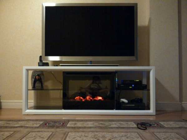 В современных интерьерах часто встречается установленный в мебель очаг. Для этого мебельный предмет покупают в соответствии с размерами камина, чтобы можно было его встроить или делают конструкцию своими руками из МДФ.