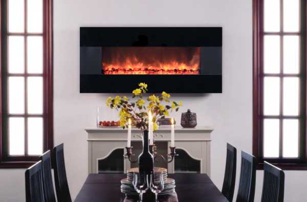 Такой вариант каминов мало похож на настоящий дровяной, но в этом есть неоспоримые плюсы – он идеально впишется в любое современное стилистическое направление и может стать главным интерьерным элементом. Настенные электрокамины для квартиры – идеальное решение для комнаты с небольшой площадью. Он не занимает места и может быть установлен над комодом, тумбой, телевизором или даже над диваном.