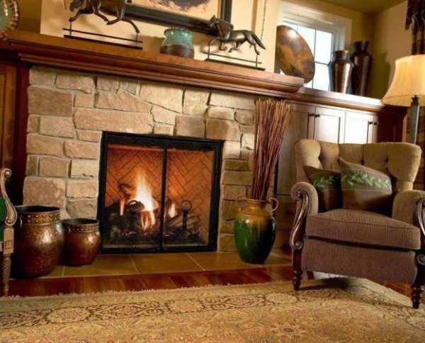 Облицовка натуральным камнем сделает дизайн камина благородным
