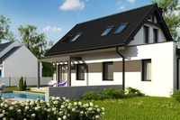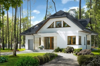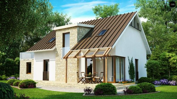 Этот дом с односкатной мансардной крышей наиболее консевативен