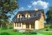 Небольшое помещений из бревна внизу, а сверху — обширная мансарда, опирающаяся на стойки