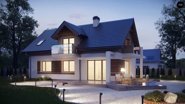 В мансарде ставят два типа окон — вертикальные и в плоскости крыши. Оба типа можно использовать в одном проекте. На фото ниже удачный пример такой комбинации. Точно не скажете, что дом незапоминающийся. А сколько еще может быть вариантов?
