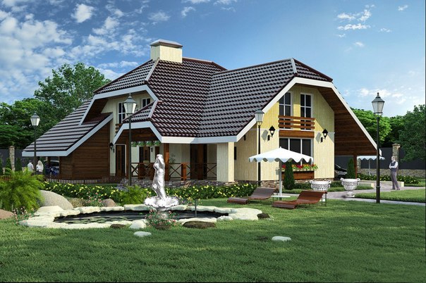 Комбинация скатов, направленных в разные стороны дает очень необычный эффект. Точно такой дом вы не назовете обычным