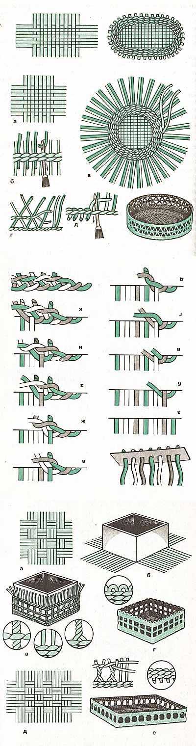 Вы можете изготавливать из газет не только шары. Посредством такого нехитрого плетения у вас получится красивая шкатулка, коробка для рукоделия или даже стильная корзинка для фруктов. Смотря, что подскажет вам фантазия. Предлагаем ознакомиться еще с несколькими схемами плетения из газет.