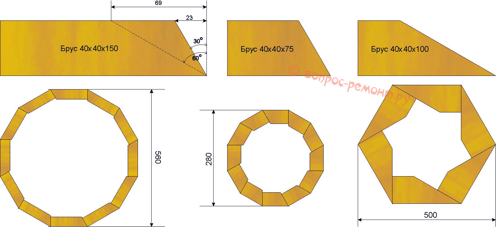 Перед началом изготовления создают макет. Это упорядочит рабочий процесс. Перед чертежом определяют размер деревянного элемента декора и площадь участка для его размещения. Посредством макета рассчитывают размер каждой детали и объем материалов, необходимых для строительства.