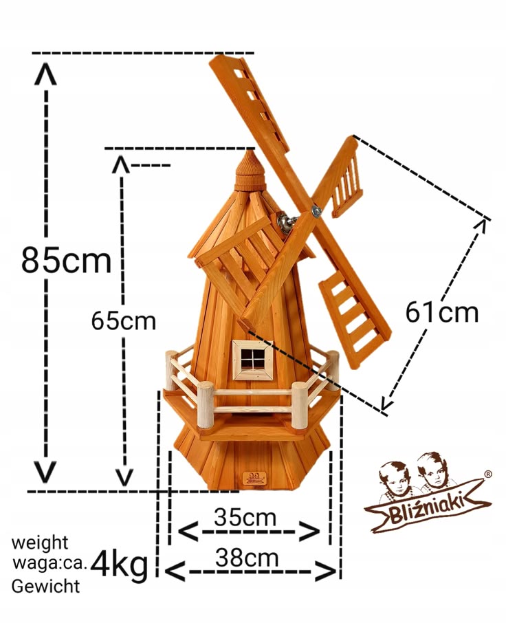 Наиболее распространенный вариант — это ветряк высотой 100-102 см с размахом крыльев 80-85 см.