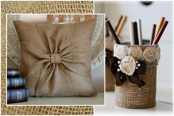 Мешковина – ткань, которая идеально подходит для творчества в независимости от квалификации и навыков. Она будет хорошо смотреться и с неровными строчками и с небольшими погрешностями при изготовлении аксессуаров. Этот грубый и, казалось бы не слишком презентабельный на вид материал, способен придать любому интерьеру индивидуальность и сделать его по-настоящему домашним и уютным.