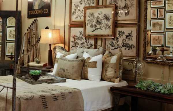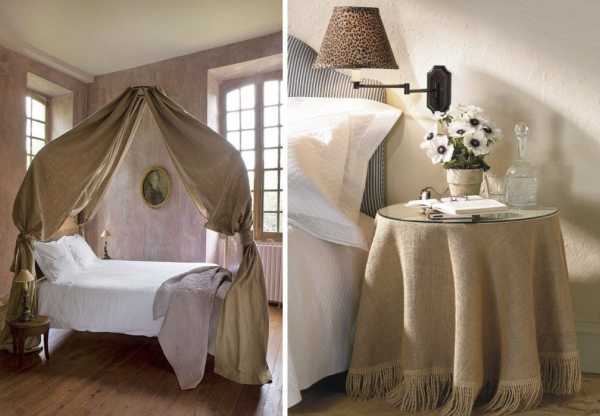 Грубый натуральный текстиль поможет придать обстановке винтажный исторический облик. В комбинации с массивной тяжелой мебелью из необработанной древесины, предметами обстановки под старину(сундуком, скамьей, буфетом) мешковина создаст очень индивидуальный, максимально естественный, практичный и удобный интерьер.