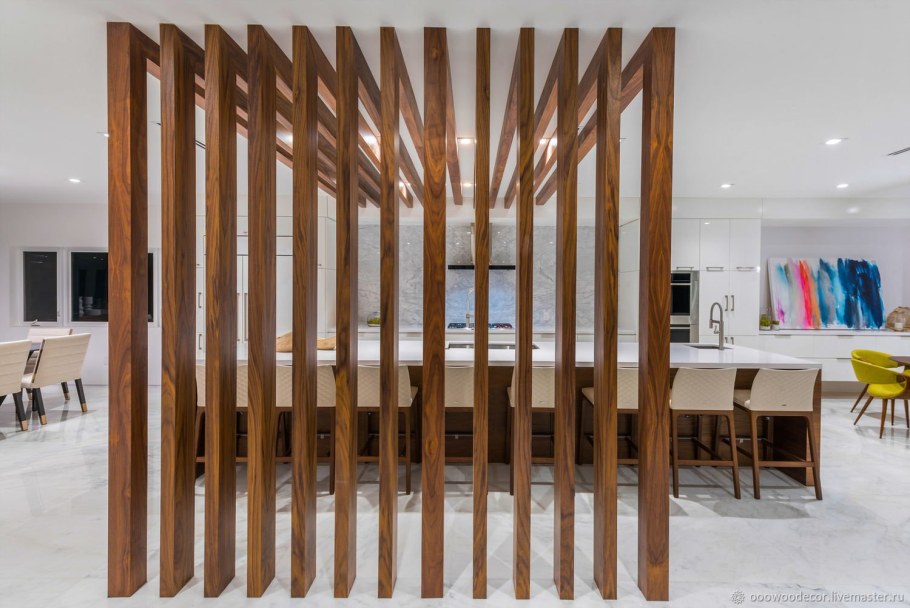 Деревянная перегородка ‘ Разделитель комнаты ‘ Деревянные рейки от пола до потолка ‘ Экологически безопасное производство