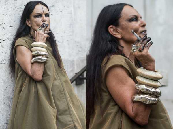 Мишель Лами, супруга и деловой партнер дизайнера Рика Оуэнса, на Парижской Неделе моды ss18, 30 сентября 2017 годаТатуировки на фалангах пальцев, золотые зубы и пугающе массивные браслеты – три обязательных составляющих ее образа. Впрочем, чего еще можно ожидать от супруги «страшного и ужасного» Рика Оуэнса? Но Мишель Лами, уроженка Франции и дочь выходцев из Алжира, вовсе не из тех дам, которые довольствуются славой мужа, выступая молчаливыми музами мастера. Во многом благодаря Мишель, Оуэнс добился мирового успеха, и именно она, бизнес-партнер Рика, – виновница того восторга, который вызывает у нас каждый показ Rick Owens на протяжении последних десяти лет. Что же известно об этой смуглой леди, напоминающую колдунью Малефисенту с замашками Вивьен Вествуд?