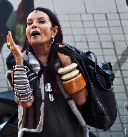 Michele Lamy — очень неординарная особа, явившая миру моды талантливого дизайнера Рика Оуэнса. Когда-то для «раскрутки» мужа (который младше супруги на 25 лет!) она продала свой ресторан, и по сей день является главным вдохновителем и финансовым директором Оуэнса. Язык не повернется назвать ее старушкой, но Мишель Лами за 75! Четырнадцать золотых зубов, темный загар, черная карандашная линия на лбу, черные пальцы, покрашенные специальной японской краской — вот неполный набор прелестей музы Рика Оуэнса. Квартиру дизайнера мы уже здесь видели, теперь знакомимся с хозяйкой)