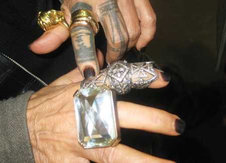 — руки обильно украшены браслетами, кольцами, татуировками.