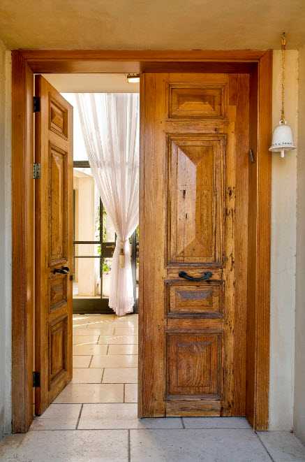 Межкомнатные двери в испанском стиле отличаются плавными линиями, тиснениям в виде виноградной лозы или завитков. Узорчатые стекла объединяют в себе элегантность и простоту и выглядят элегантно, как показано на фото.